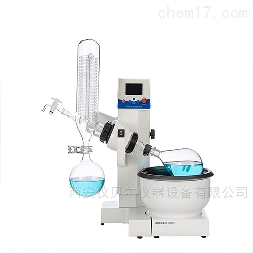 蒸发瓶恒速旋转,水浴锅恒温加热,在此条件下:物料在蒸发瓶内壁形成大面积均匀薄膜快速蒸发,在真空条件下可以提高蒸发效率(需连接真空装置),溶媒蒸汽经玻璃冷凝盘管时冷却成液体(需连接冷却装置),回收于收集瓶。本系列产品使用需配套真空装置(循环水式、旋片式、隔膜式等真空泵),冷却循环装置组成系统装置。