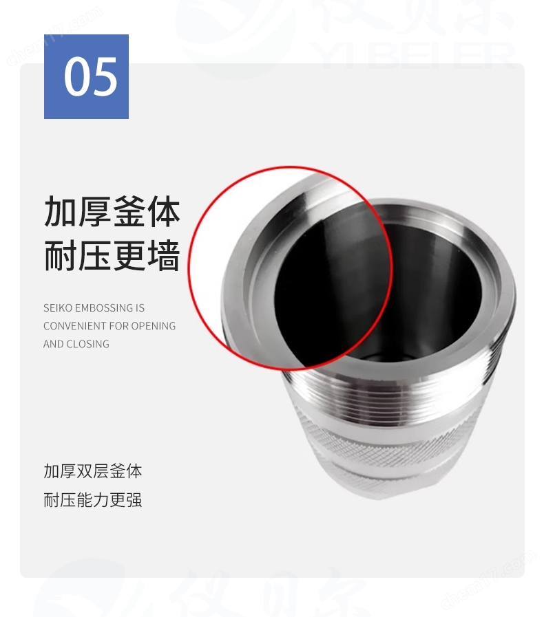 防爆式水热合成反应釜30ml平头款仪贝尔高压反应釜烘箱中使用的水热反应釜,也称为溶样器、压力溶弹、高压消解罐、消化罐、聚四氟乙烯高压罐、聚四氟乙烯密封溶样器。