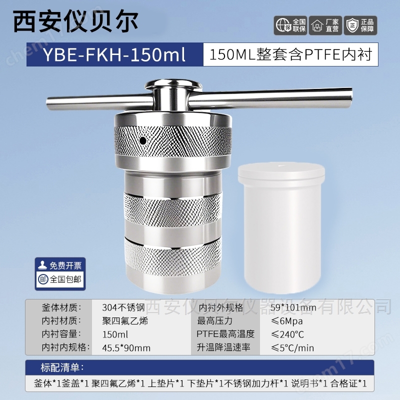 150ml防爆水热合成反应釜T型聚四氟乙烯内胆